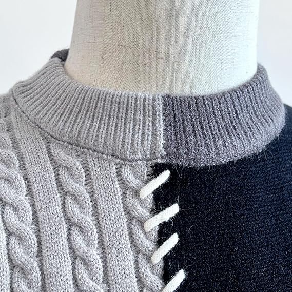 ユニークな編み地の切り替えが視線を惹きつけるデザイン。