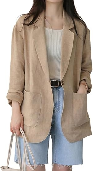 涼感あるリネン混で春夏に最適。ワンボタン&ロールアップ袖がラフなこなれ感。